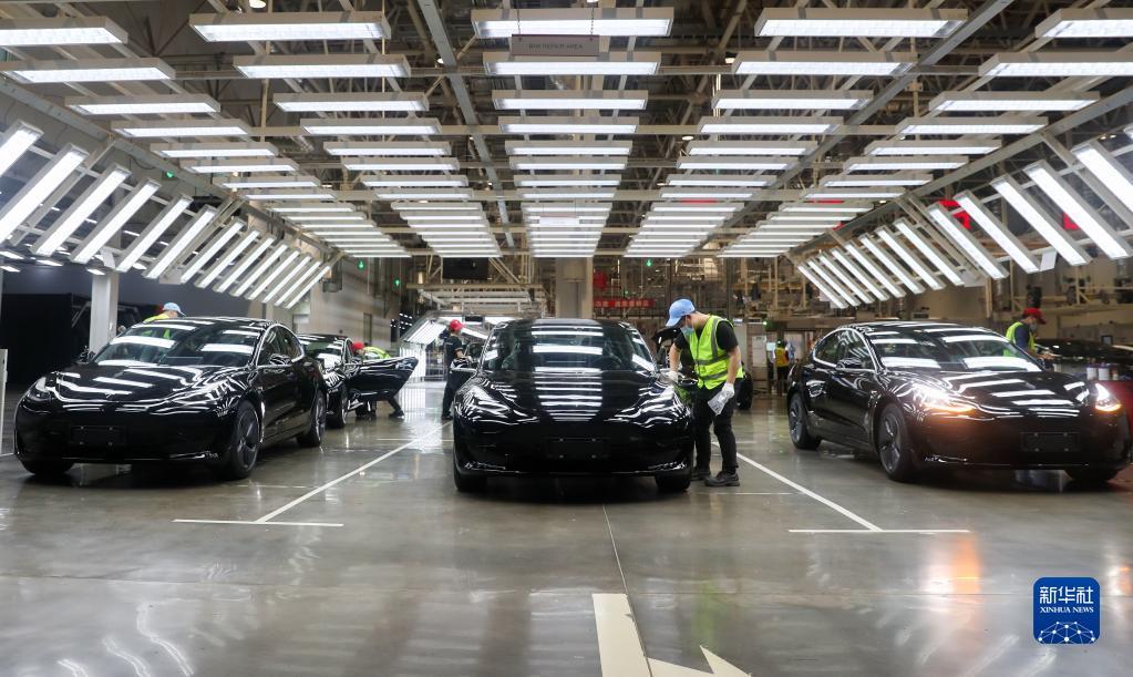 工作人员在特斯拉上海超级工厂内作业(2020年11月20日摄)。新华社记者丁汀 摄